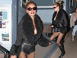 The model, 28, left little to the imagination as she teamed her high-waisted shorts with a black, fur-trimmed bodysuit, that featured a plunging neckline....