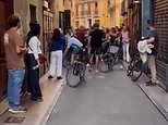The two groups appeared to come close to blows in a narrow street in Valencia's pretty Old Town....