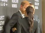 The Duchess seems to look uncomfortable as she quickly breaks away from her husband as they pose for photographers ahead of being crowned 'humanitarians of the year'....
