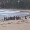 Bystanders on North Steyne Beach near Manly in New South Wales, Australia, said a surfer was pulled from the sea with lacerations to his leg - and suffered a heart attack...