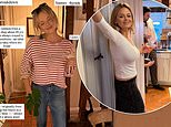 The actress, 36, shared a photo of herself in a red and white striped top and a pair of skinny jeansas she gave her followers a breakdown of where the outfit was from....
